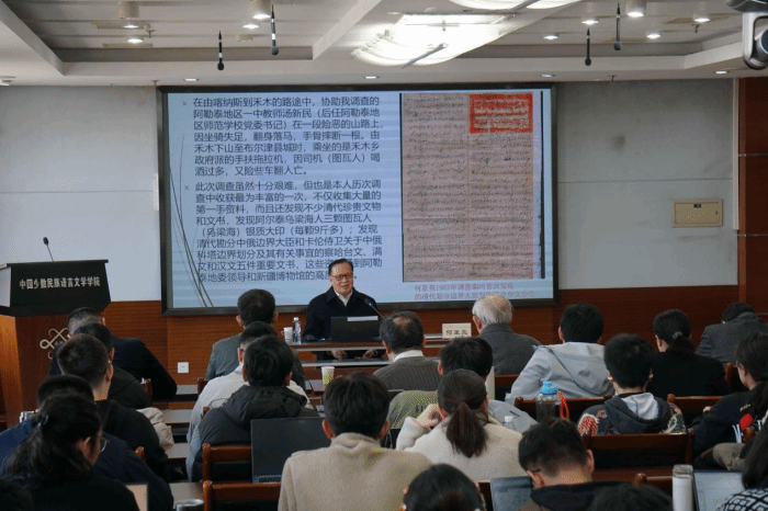 他强调学术研究应该“先专后通”“专题性研究与综合性研究相结合”“科学分析和人文学分析相结合”“以小见大和以大见小相结合”“基础研究与应用研究相结合”。认为当代我国的人文社会科学研究不能只做纯学术的研究,一个真正有成就的学者,既要在理论和思想上有所建树,更要在民族复兴、国家富强、人民幸福等方面有所作为,做学问必须有益于国家。他的分享赢得了与会师生的共鸣,随后大家就当前新疆研究中的热点问题及未来研究方向展开交流。
