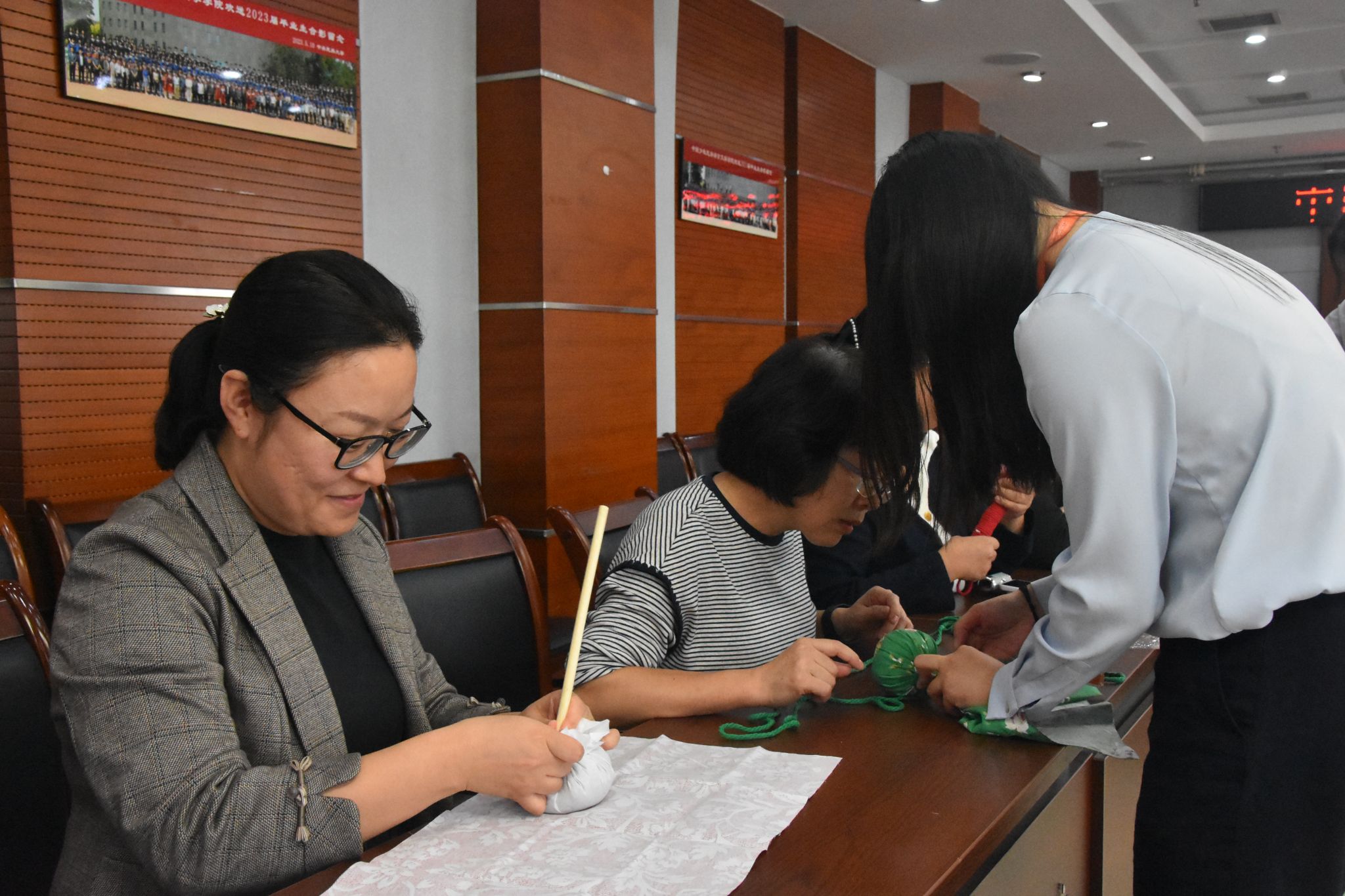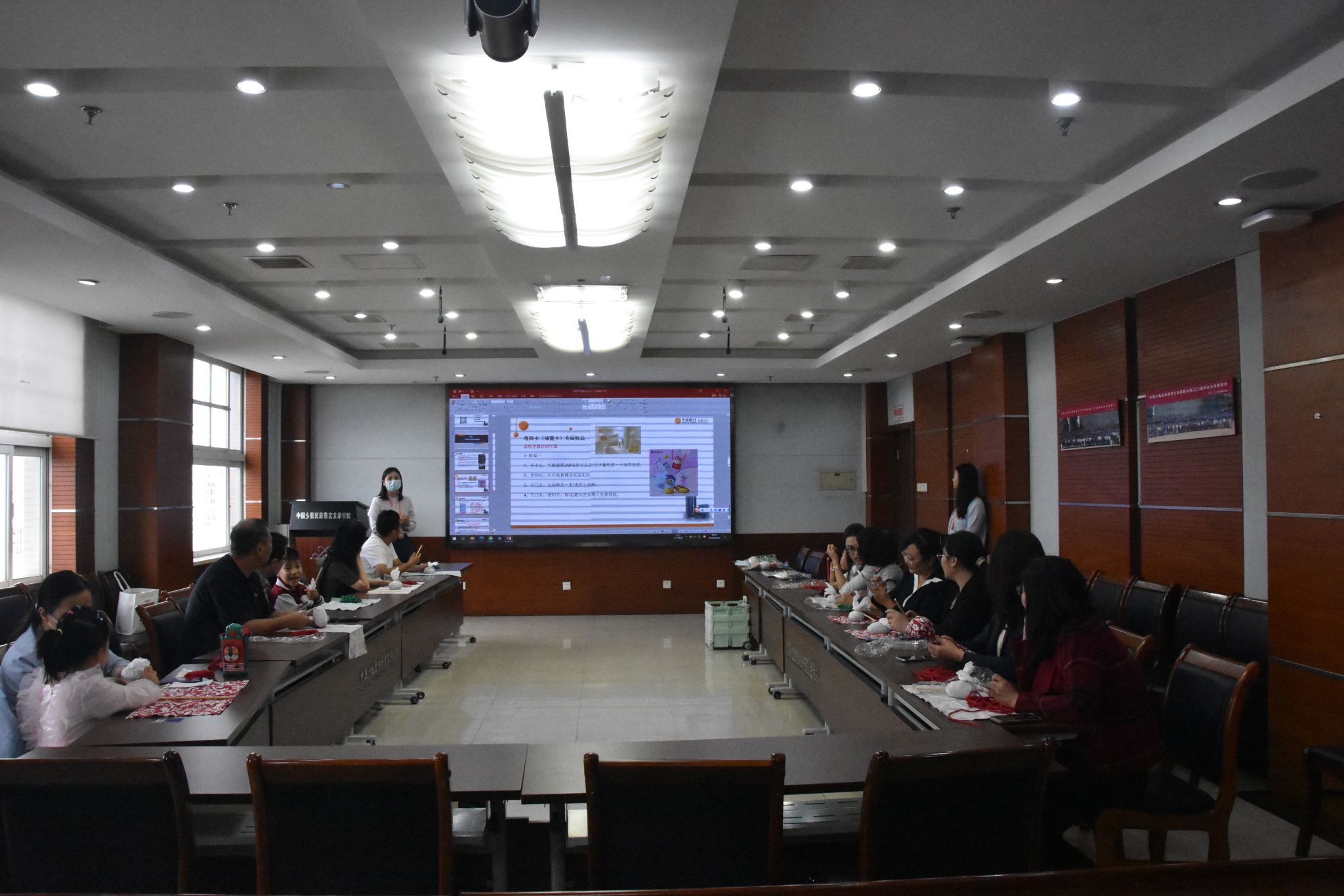 接着,宁波银行北京海淀科技支行工作人员详细介绍了支行情况。随后,艾草按摩锤手工制作活动正式开始,教工们积极参与,充满欢声笑语,现场气氛热烈。活动期间还设置了问答抽奖环节,增加了活动的趣味性和互动性。
