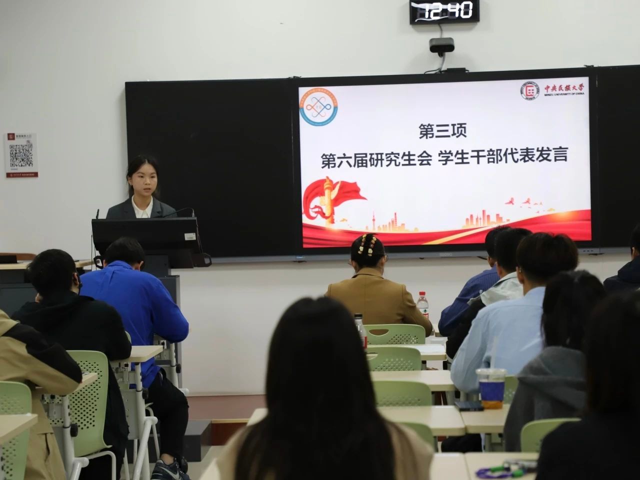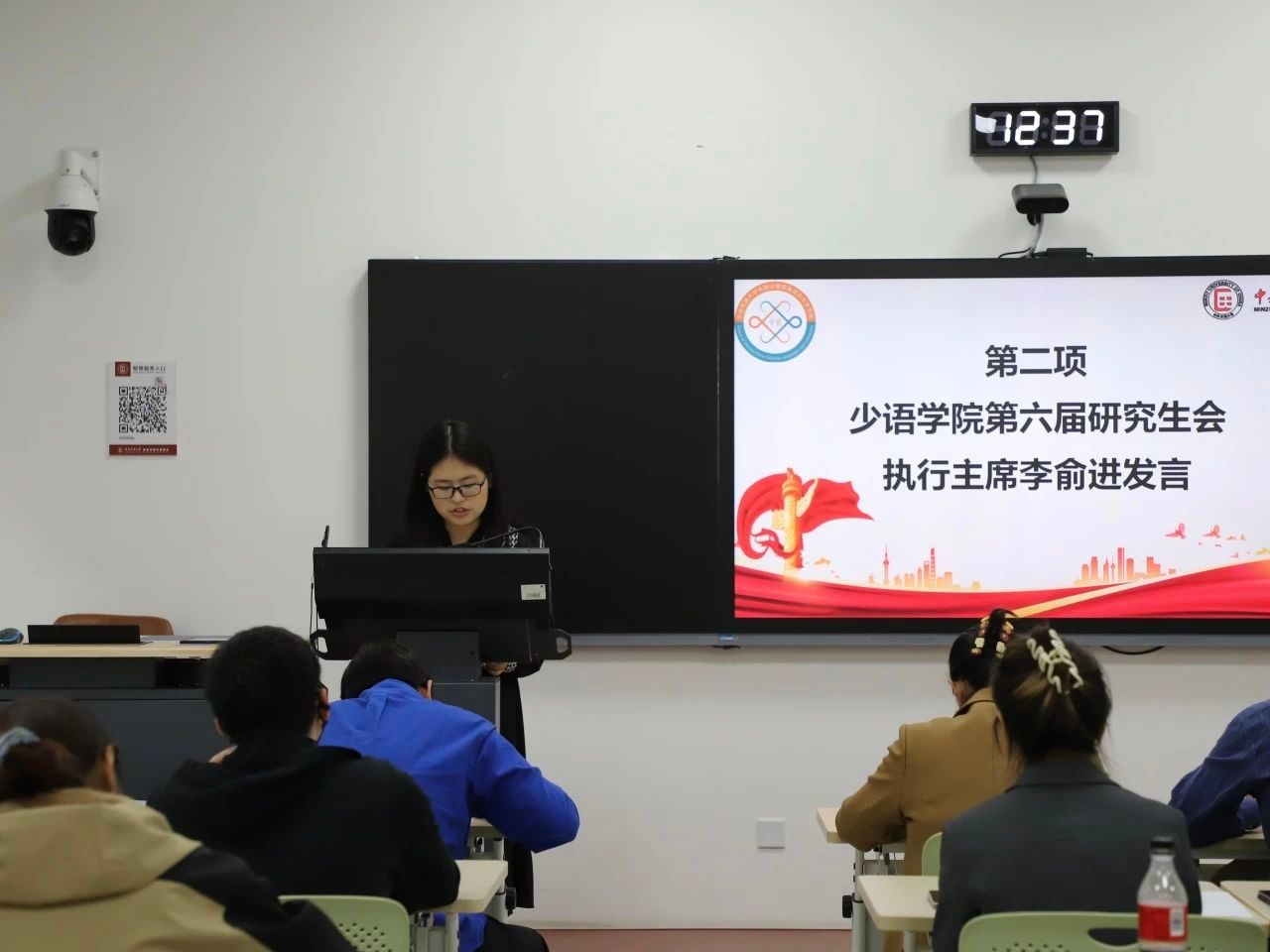 会议第二项,第六届研究生会执行主席李俞进发言。她提出新一届研究生会将结合本成人抖音