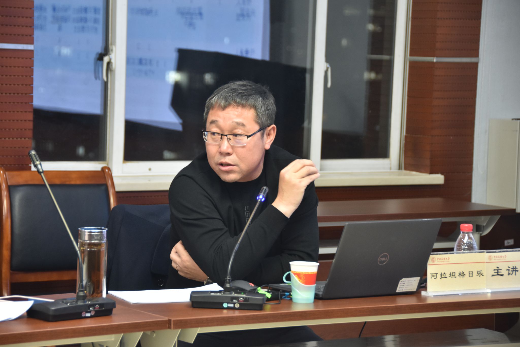 院长阿拉坦格日乐教授作学术报告,题为“科尔沁口头传统的文化空间——以搜集整理‘嘎拉巴故事’为例”。讲座由好比斯嘎拉图副教授主持。